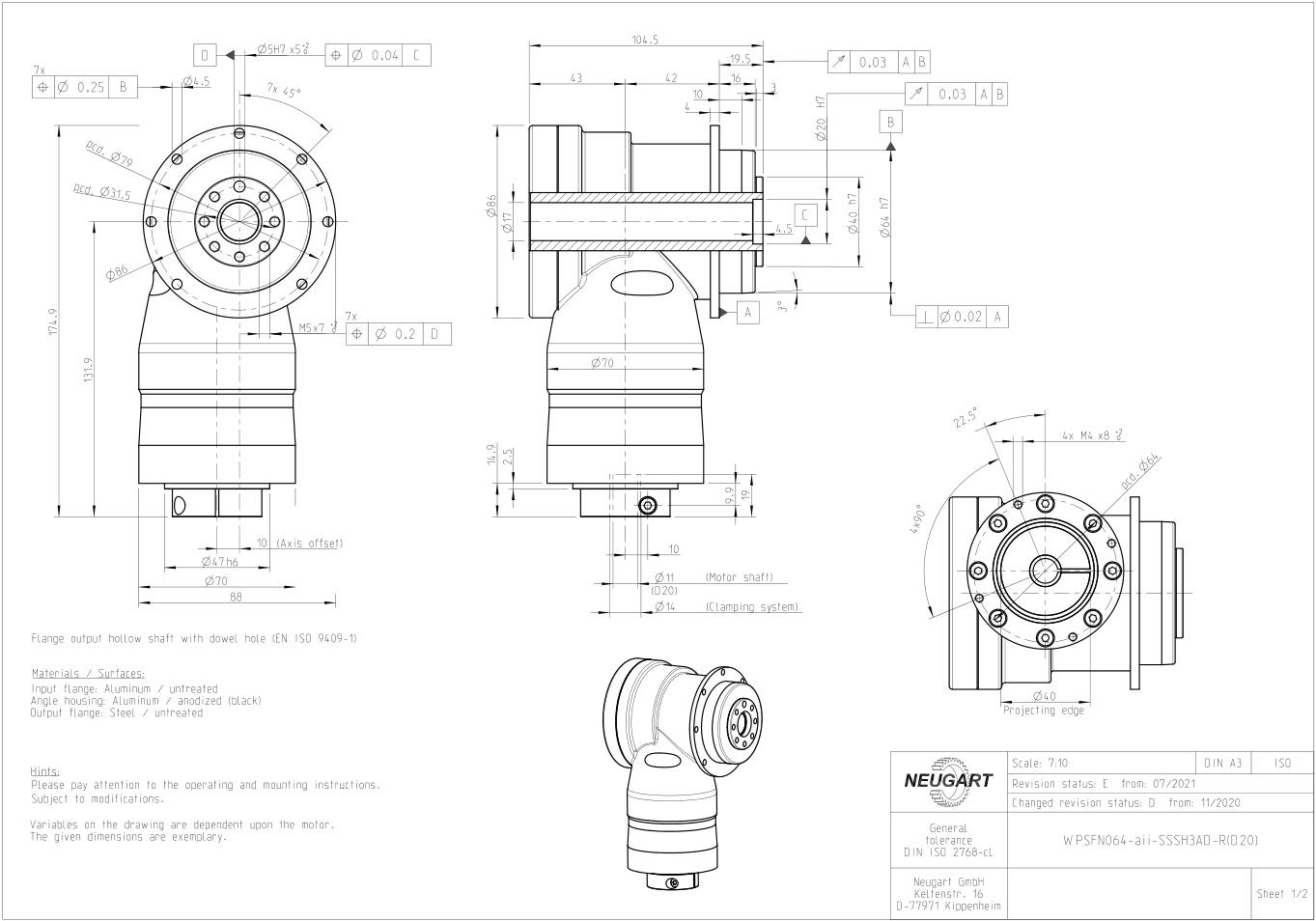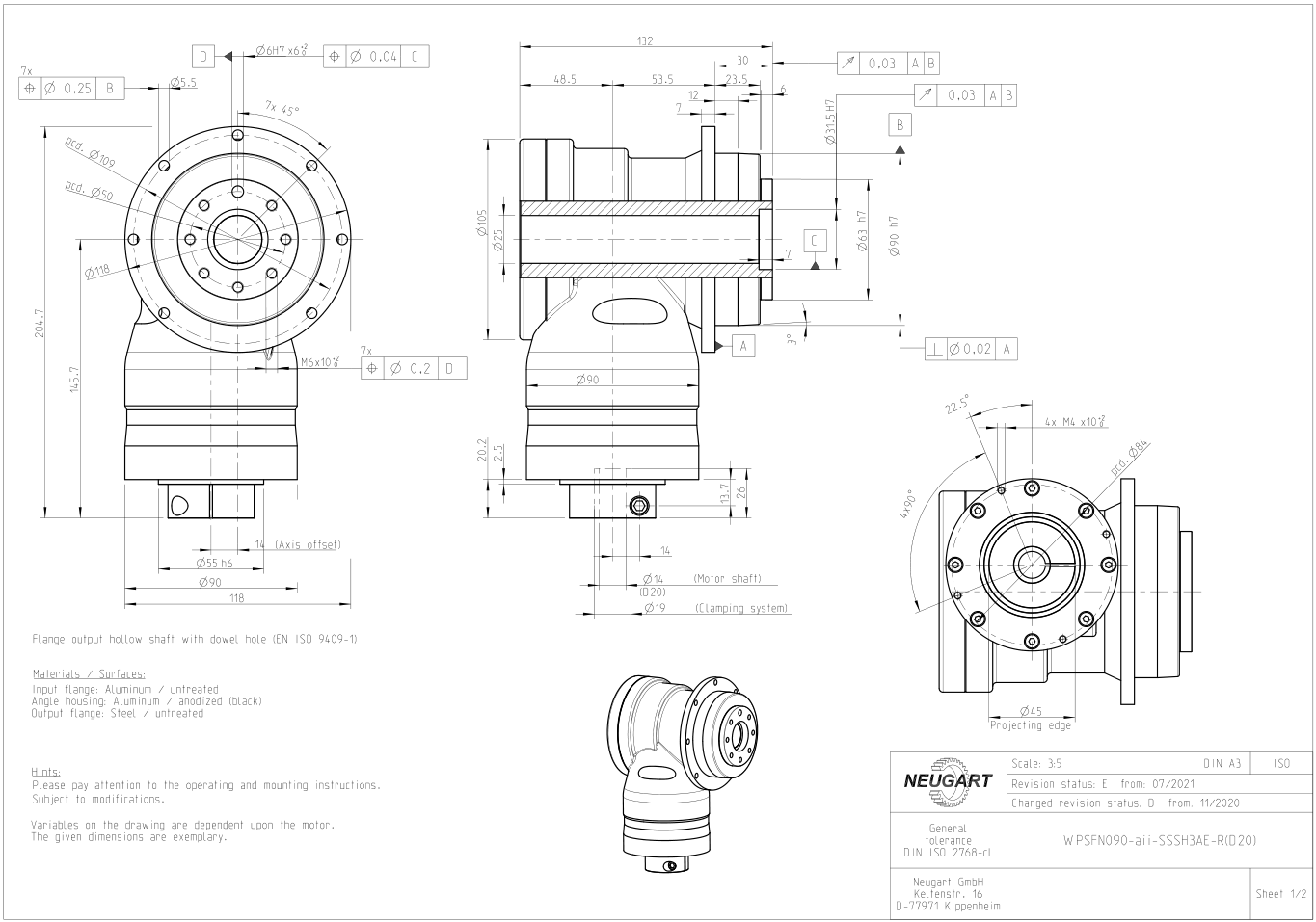 WPSFN是NEUGART一款配有法蘭輸出軸和空心軸的齒輪直角行星減速機,憑借標準化的法蘭接口能夠輕松快速集成到系統(tǒng)中。通過準雙曲面齒輪和斜齒行星系統(tǒng)優(yōu)化同步運行功能,實現加工表面的質量。轉角盤式輸出行星減速機圖紙下載,全系列減速機型號圖紙下載,不同尺寸速比減速機圖紙聯系技術在線下載或提供選型樣本。
