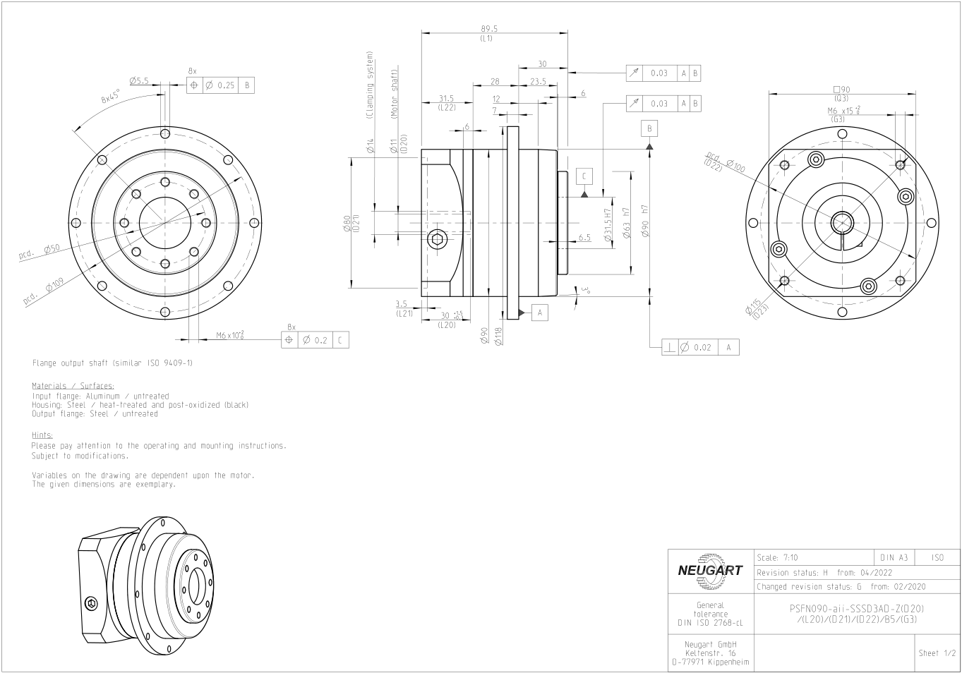 PSFN gearbox dimension drawing download: